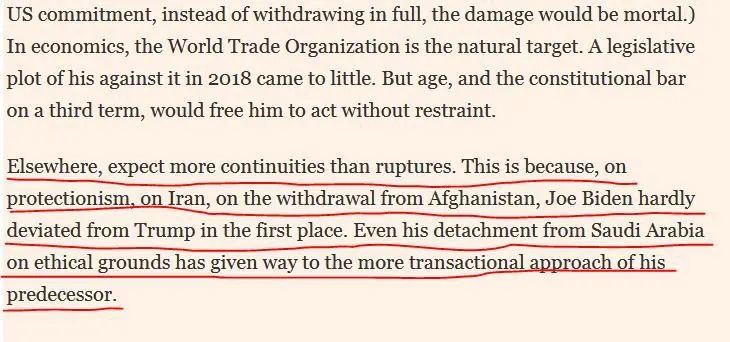 Il Financial Times si lamenta della continuità tra Trump e Biden