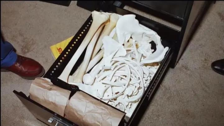 Lo scheletro della vittima Ernest Miller messo nella scrivania di Dahmer