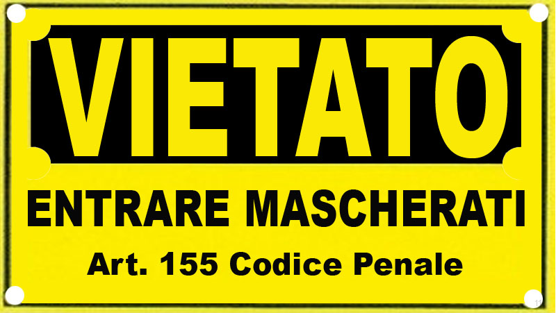 Il Testo Unico sulle leggi di Pubblica Sicurezza (R.D. 18 giugno 1931, n. 773) il quale, all’art. 85, così prevede: “E’ vietato comparire mascherato in luogo pubblico. Il contravventore è punito con Ia sanzione amministrativa da euro 10 (lire 20.000) a euro 103 (200.000). E’ vietato l’uso della maschera nei teatri e negli altri luoghi aperti al pubblico, tranne nelle epoche e con l’osservanza delle condizioni che possono essere stabilite dall’autorità locale di pubblica sicurezza con apposito manifesto. Il contravventore e chi, invitato, non si toglie la maschera, è punito con la sanzione amministrativa da euro 10 (lire 20.000) a euro 103 (200.000) . Sanzione così sostituita per effetto dell’art. 32, L. 24 novembre 1981, n. 689. Precedentemente la sanzione prevista era l’ammenda. Importo modificato dall’art. 3, L. 12 luglio 1961, n. 603 e successivamente dagli artt. 113 e 114, L. 24 novembre 1981, n. 689.”