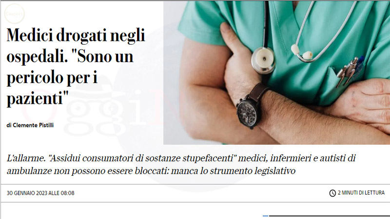 L’allarme. “Assidui consumatori di sostanze stupefacenti” medici, infermieri e autisti di ambulanze non possono essere bloccati: manca lo strumento legislativo
