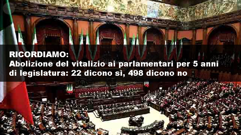 498 Deputati della Repubblica Italiana, su 525 presenti in Parlamento il giorno 21 settembre 2011, hanno votato contro l’abolizione del vitalizio che “spetta” ai Parlamentari dopo 5 anni di legislatura.