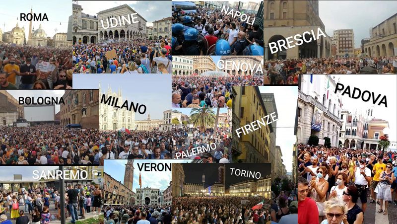 Una sabato di manifestazioni, con un coro che unisce le piazze di una sessantina di città italiane in un unico posto: «Libertà, libertà». Da Milano a Napoli, organizzati sui social per protestare contro il certificato digitale che attesta l’eseguita vaccinazione, il risultato del tampone negativo o la guarigione dalla Covid-19. «Pacifiche, spontanee e apartitiche»: gli organizzatori hanno invitato i dimostranti sui social a non lasciarsi andare in atteggiamenti riottosi, infatti chi ha creato disordini sono sempre gli stessi infiltrati, ma questa volta smascherati dai video che stanno girando in rete.