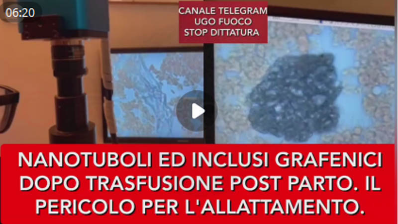 RINVENUTI NANOTUBOLI ED INCLUSI GRAFENICI NEL SANGUE DI UNA NON VACCINATA DOPO TRASFUSIONE POST PARTO.