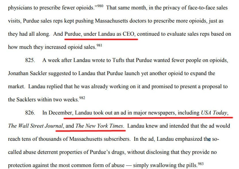 Come spiega la causa del Massachusetts, Purdue Pharma ha pagato il New York Times per la pubblicità: