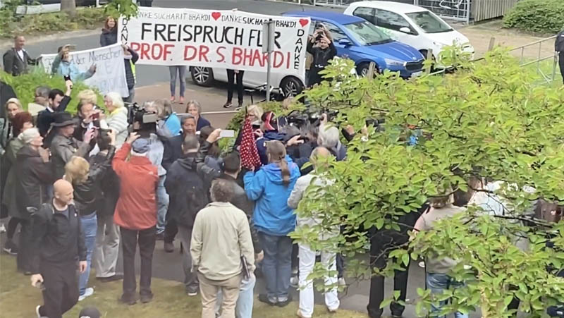 Il giudice Grundmann ha ritenuto il Prof. Bhakdi non colpevole su entrambi i fronti. In pochi secondi, la folla di sostenitori fuori dal tribunale si è sentita applaudire per la decisione.