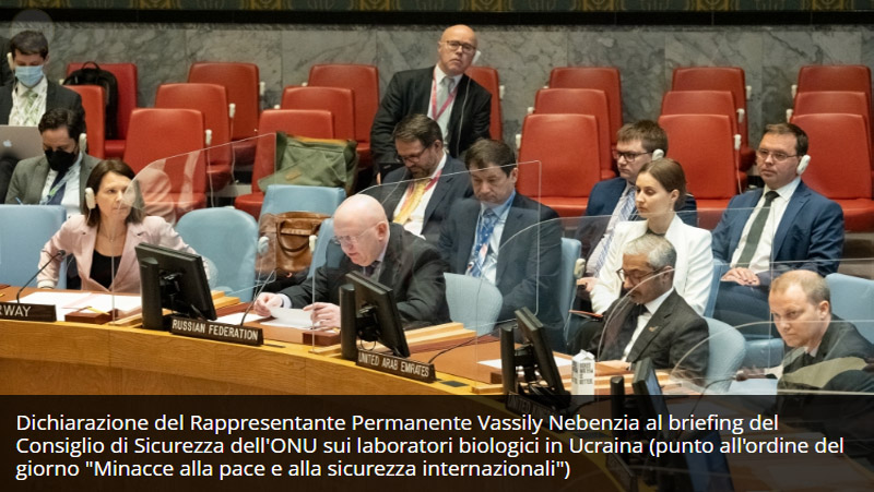 Dichiarazione del Rappresentante Permanente Vassily Nebenzia al briefing del Consiglio di Sicurezza dell’ONU sui laboratori biologici in Ucraina (punto all’ordine del giorno “Minacce alla pace e alla sicurezza internazionali”)