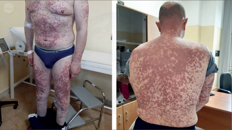 Le caratteristiche cliniche dei pazienti sono riassunte nell’appendice (p 1). In breve, il paziente 1 era un uomo di 57 anni con una storia di ipertensione ma nessuna precedente storia personale o familiare di autoimmunità. La porpora si è sviluppata 14 giorni dopo la prima dose di vaccino, interessando inizialmente gli arti inferiori e diffondendosi rapidamente all’addome, al busto e alla testa (figura). Ha ricevuto un trattamento con 1 mg / kg di prednisone, che ha portato alla risoluzione progressiva delle lesioni cutanee nell’arco di 3 settimane. Il paziente 2 era un uomo di 58 anni, la cui precedente storia medica era anche insignificante senza storia di autoimmunità. La porpora si è sviluppata 7 giorni dopo la seconda dose di vaccino, diffondendosi dagli arti inferiori all’addome e al tronco (appendice p 2). Ha ricevuto 0,5 mg/kg di prednisone, senza alcun beneficio clinico, e poi 1 mg/kg di prednisone, con risoluzione progressiva delle lesioni cutanee nell’arco di 10 giorni. Il paziente 3 era una donna di 53 anni senza condizioni di salute di base o storia di autoimmunità. La porpora si è sviluppata 6 giorni dopo la prima dose, interessando gli arti inferiori e superiori. Ha ricevuto un trattamento con 1 mg / kg di prednisone, che ha portato a una risoluzione progressiva delle lesioni cutanee nell’arco di 2 settimane.