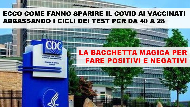 Questa decisione già di per sè falsa il conto dei falsi positivi perché vengono conteggiate persone che non hanno mai avuto veramente il virus nè alcun sintomo. Ora però il CDC americano ha preso la decisione di abbassare il numero dei cicli a 28, ma solo per i vaccinati. In pratica, il sistema fa apparire e scomparire la falsa pandemia con la bacchetta magica.