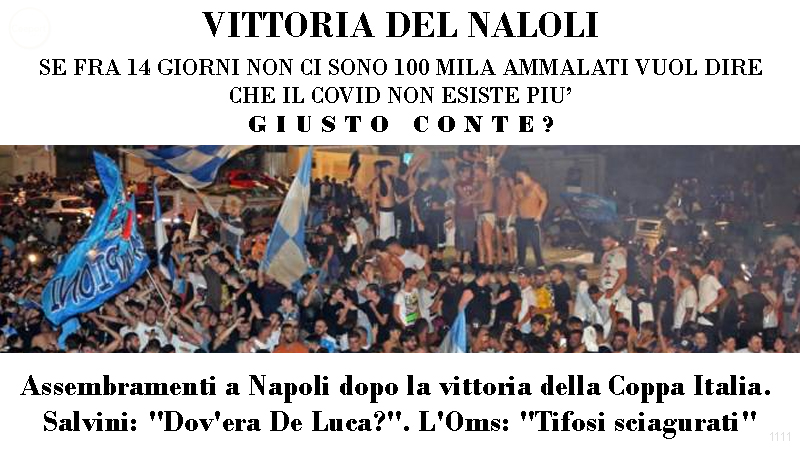 E a chiedersi dove fosse Vincenzo De Luca, il governatore con il “lanciafiamme” che per mesi si è scagliato contro i napoletani invitandoli ad essere rigorosi, sono in molti. C’è chi teme che gli assembramenti che si sono venuti a creare a Napoli ieri sera possano portare a nuovi contagi. E la paura è tanta visto che il virus è ancora in circolazione. “Sciagurati! – ha tuonato Ranieri Guerra, direttore aggiunto dell’Organizzazione mondiale della sanità (Oms), ad Agorà su Rai 3 – In questo momento non ce lo possiamo permettere. Per fortuna è accaduto a Napoli, dove governatore e sindaco hanno messo in atto misure rigide e l’incidenza del virus è più bassa che altrove. Fa male vedere queste immagini. Ricordo quanto ha contato la partita dell’Atalanta all’inizio dell’epidemia. Non vorrei che si ripetesse proprio ora, che il Comitato Tecnico Scientifico ha cercato di accogliere le proposte del Figc per non limitare del tutto il gioco del calcio, come da scienza e coscienza medica sarebbe suggerito”. Poi ha aggiunto: “I segnali sono che il virus in questo momento è comunque in circolazione. Non si può dire che siamo scampati ad una eventuale seconda ondata, perche il virus continua a circolare”.