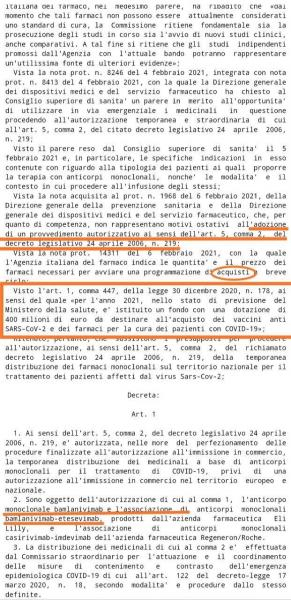 Gli ospedali italiani hanno somministrato anticorpi monoclonali privi di autorizzazione all’immissione al commercio.