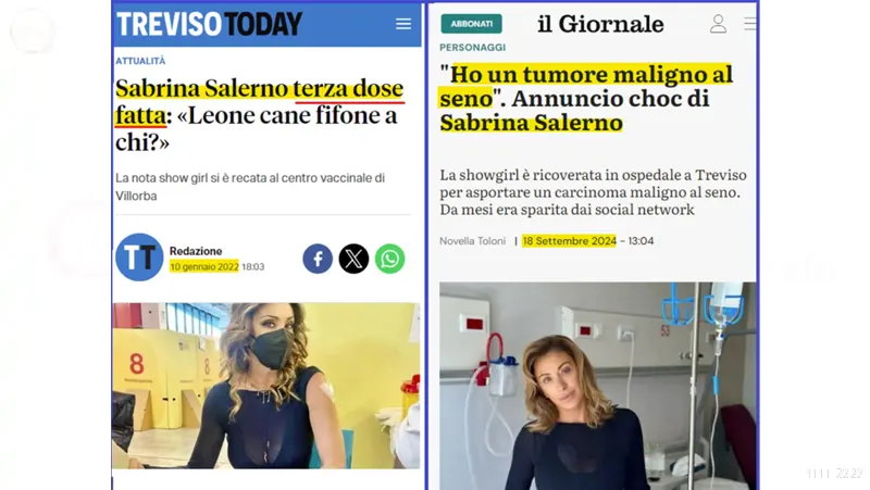 Leone cane fifone a chi? Grazie per la pazienza. Terza dose fatta!» con queste parole Sabrina Salerno ha reso noto nei suoi social che ha avuto la terza dose nel hub di Villorba. Pienone di like, oltre 40 mila su Instagram e più di 600 commenti su Facebook, alcuni anche sulle forme generose che la sua mise in nero lascia trasparire, altri lodando il suo gesto di civiltà e buon senso, per usare la propria celebrità e indiscussa bellezza per un buon fine.