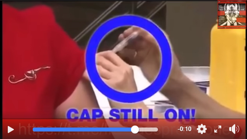 In questo video viene ripresa una politica che fa il vaccino per dare l’esempio al suo popolo, peccato che nella siringa c’era il tappo