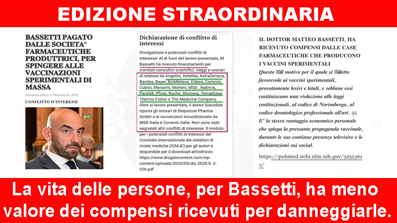 La vita delle persone, per Bassetti, ha meno valore dei compensi ricevuti per danneggiarle.