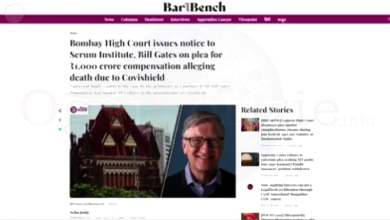 Il 26 Agosto 2022 la Corte Suprema di Bombay ha ordinato al Serum Institute of India e a Bill Gates di rispondere alla richiesta di risarcimento presentata a Gennaio 2022 da Dilip Lunawat (https://indianbarassociation.in/wp-content/uploads/2022/01/Snehal-Lunawat-Petition.pdf)per la morte di sua figlia a causa del ‘vaccino’ Covishield.