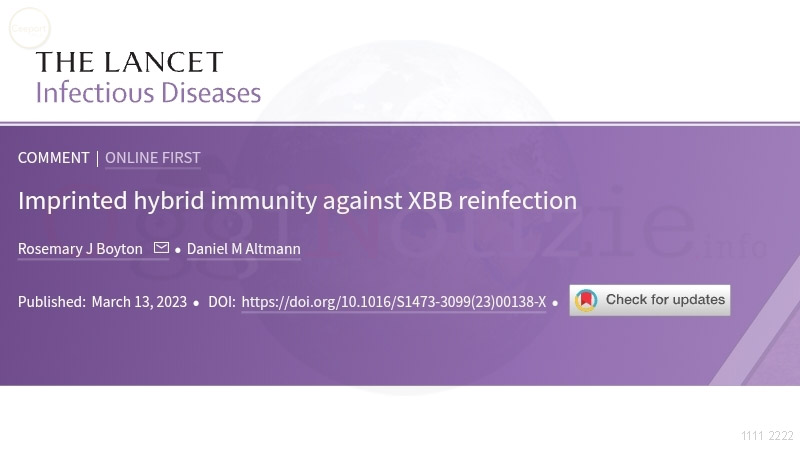Un recente editoriale sulla rivista The Lancet malattie infettive dal titolo “Imprinted hybrid immunity against XBB reinfection” di due scienziati dell’Imperial College di Londra , entrambi esperti in immunologia, afferma che nonostante ci troviamo nel quarto anno della pandemia di COV 19 non c’è ancora un reale percorso verso l’immunità di gregge, ma al contrario siamo di fronte a un futuro molto “incerto”. I due rispettati immunologi britannici, il prof. Rosemary Boyton e il prof. Danny Altmann, sono sorprendentemente sinceri sulla realtà odierna della vacci nazione contro il COV19.