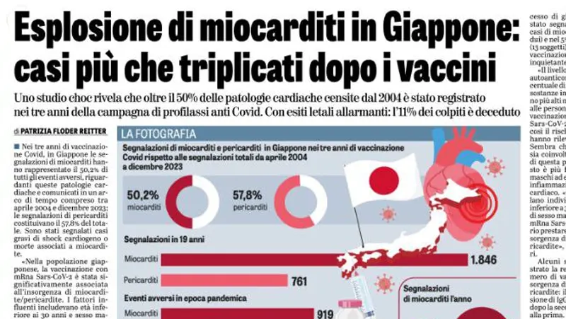Esplosione di miocarditi in Giappone: casi più che triplicati dopo i vaccini