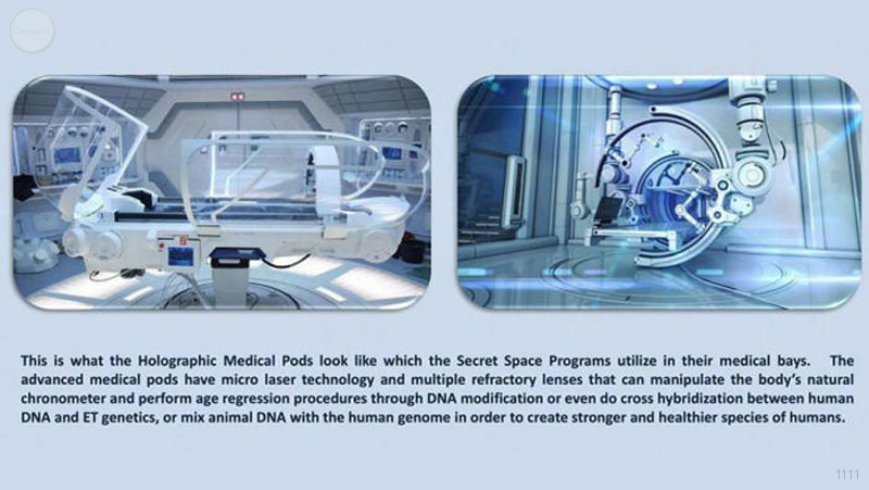 La foto sopra è l’aspetto delle capsule mediche olografiche che i programmi spaziali segreti (SSP) usano sulle loro piattaforme mediche.