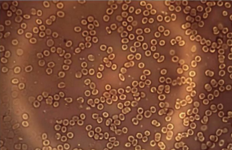 Il normale sangue di una persona non vaccinata è quello che si può vedere qui sotto. Non si segnala nessuna coagulazione né la presenza di oggetti estranei nelle piastrine rosse.