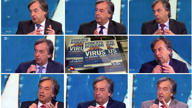 Ripresa del libro del professor Burioni. La prima domanda che viene riportata riguarda un servizio andato in onda al Tg2 nel quale si parlava dell’eventuale riapertura delle librerie. Nel servizio è stato ripreso il libro del professor Burioni, un’attenzione che non è stata data ad altri testi simili.