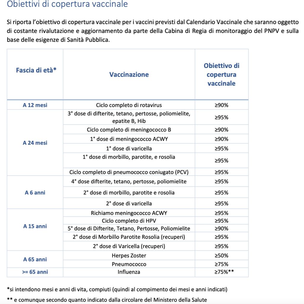 Sono stati inoltre cancellati dagli obiettivi di copertura vaccinale previsti nel Calendario nazionale vaccinale, quelli a medio e breve termine e riviste anche le fasce di età entro le quali somministrare le dosi vaccinali.